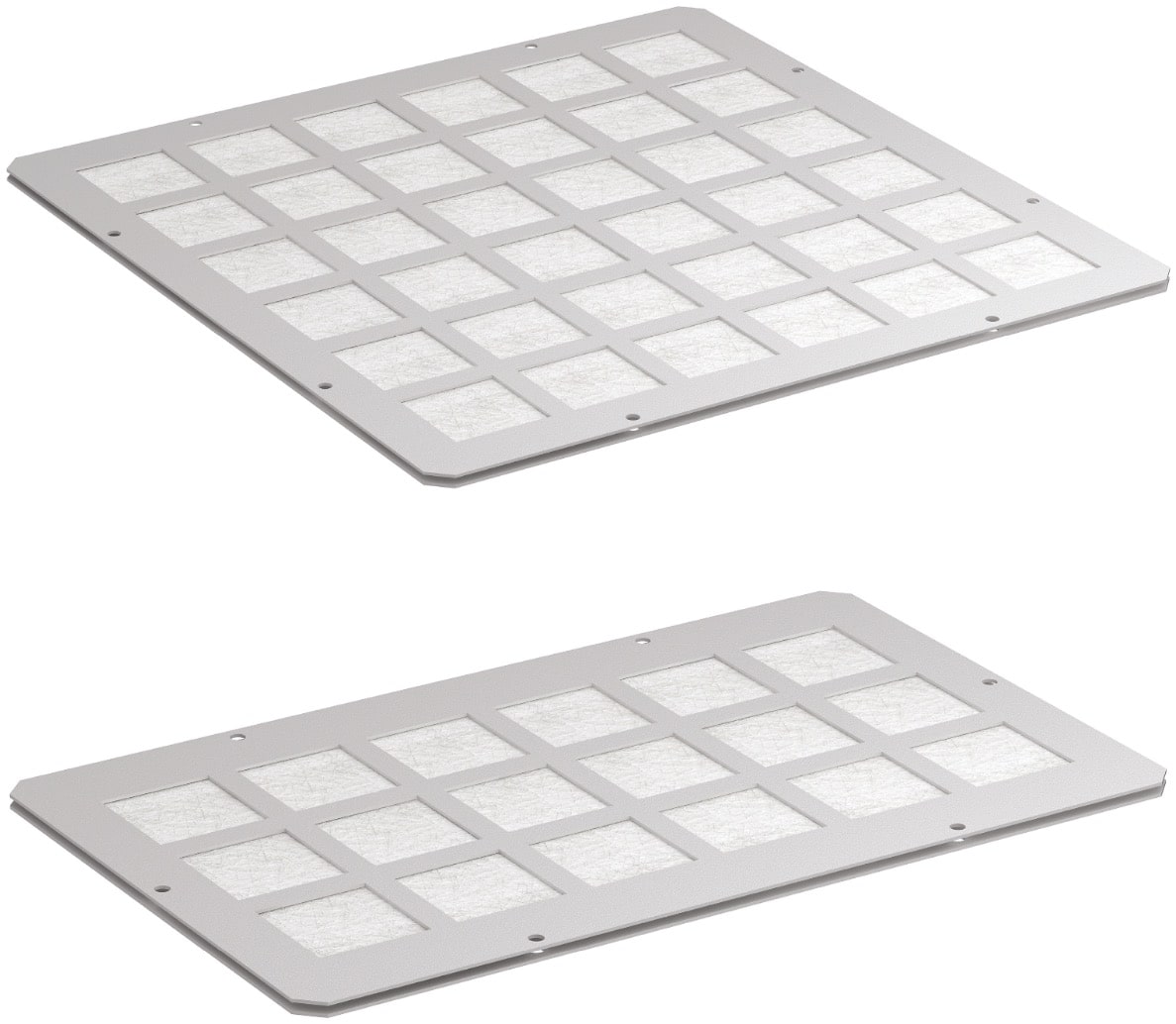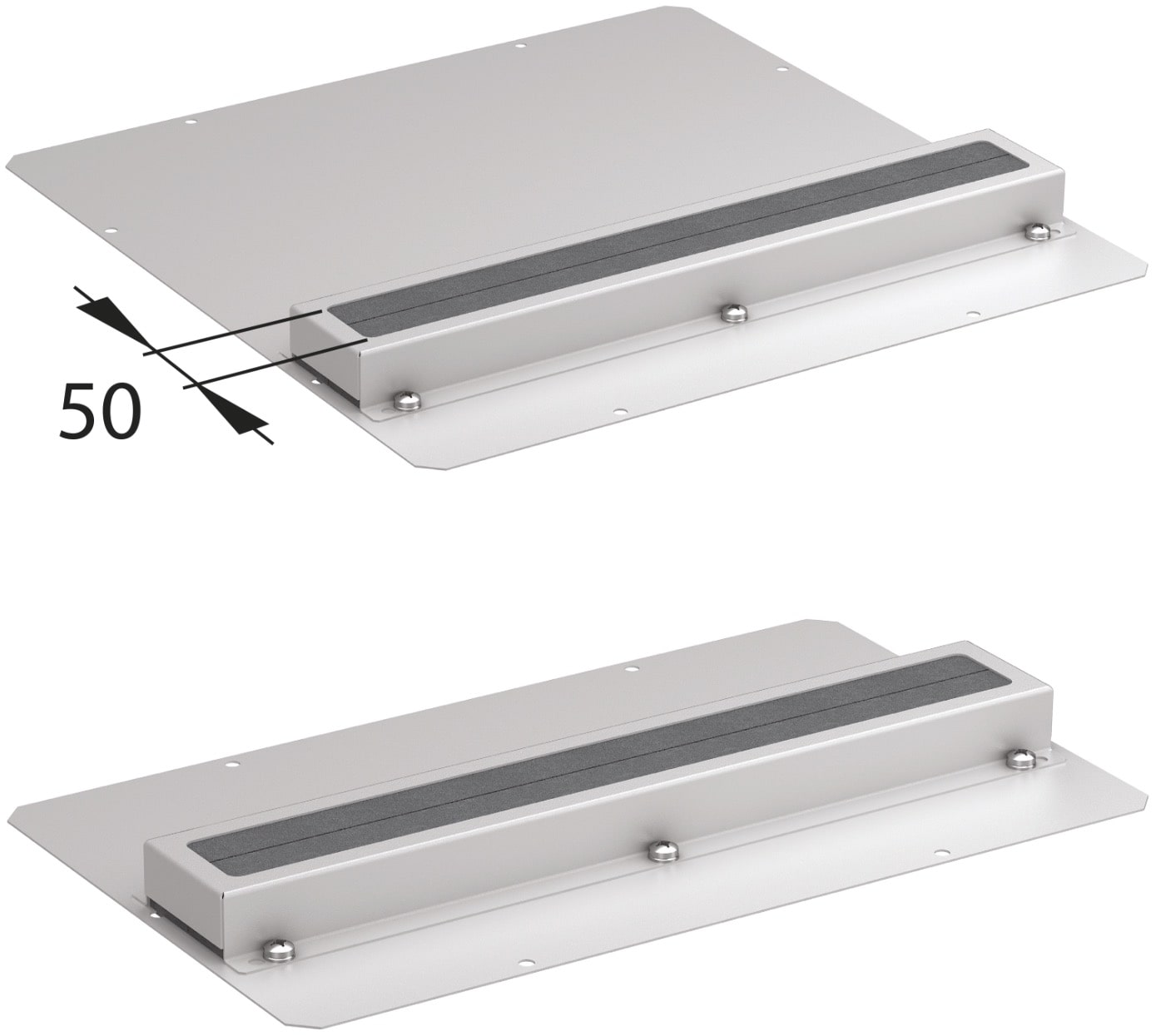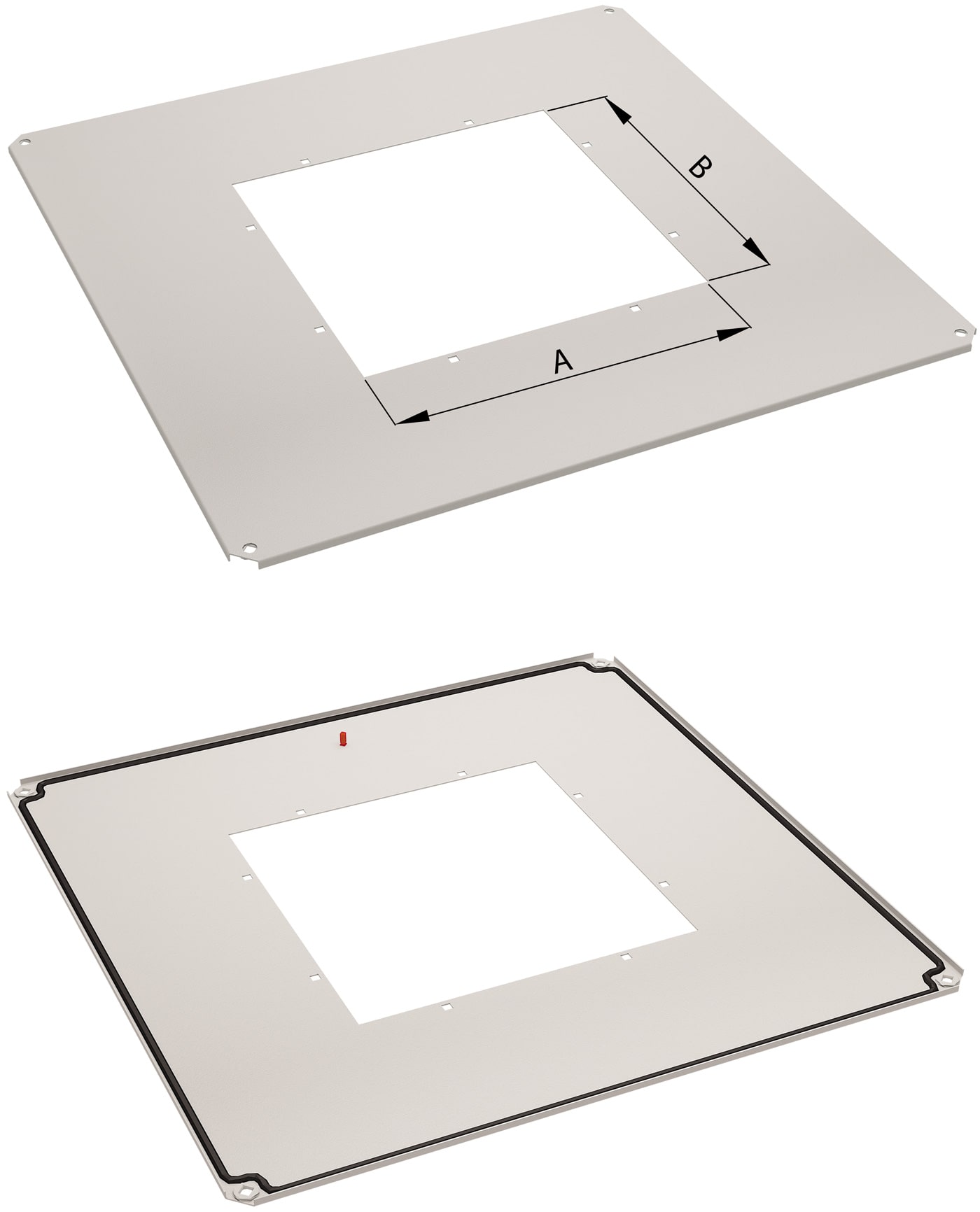 Set of 2 sliding gland plates with foam strip (No. 4 and 5) or brush strip (No. 6 and 7). Used for one opening in SZE3 cabinet bottom plate (note: 1000 and 1200 mm wide cabinets have two openings in the bottom plate).